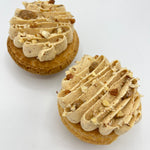 Ce Paris-Brest est composé d'un choux craquelin, d'une crème Paris-Brest au praliné noisettes, de praliné pur à la noisette et d'éclats de noisettes.