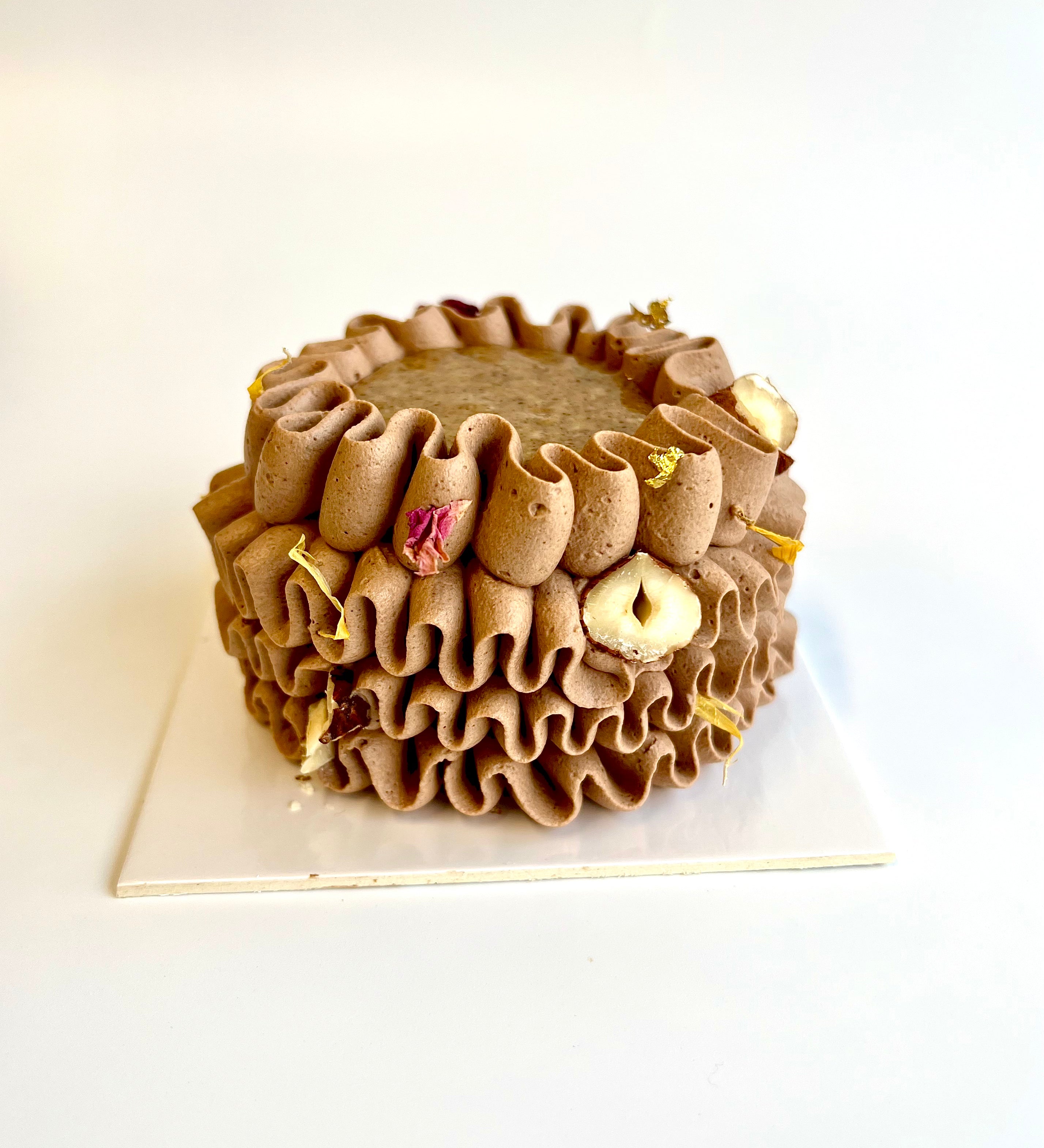Chaque produit est confectionné avec des ingrédients frais et de saison, afin d'en faire ressortir le meilleur. J'aime travailler mes pâtisseries autour d'un mélange de textures et de saveurs : allier le moelleux au croustillant, le crémeux à l'onctueux, l'acidité à la douceur. Et parce que l'on goûte d'abord avec les yeux, j'accorde une attention toute particulière au visuel de mes créations, en les sublimant d'un joli pochage, de fleurs séchées, de feuille d'or. Mon objectif ultime : ravir vos papilles et celles de vos proches !
