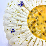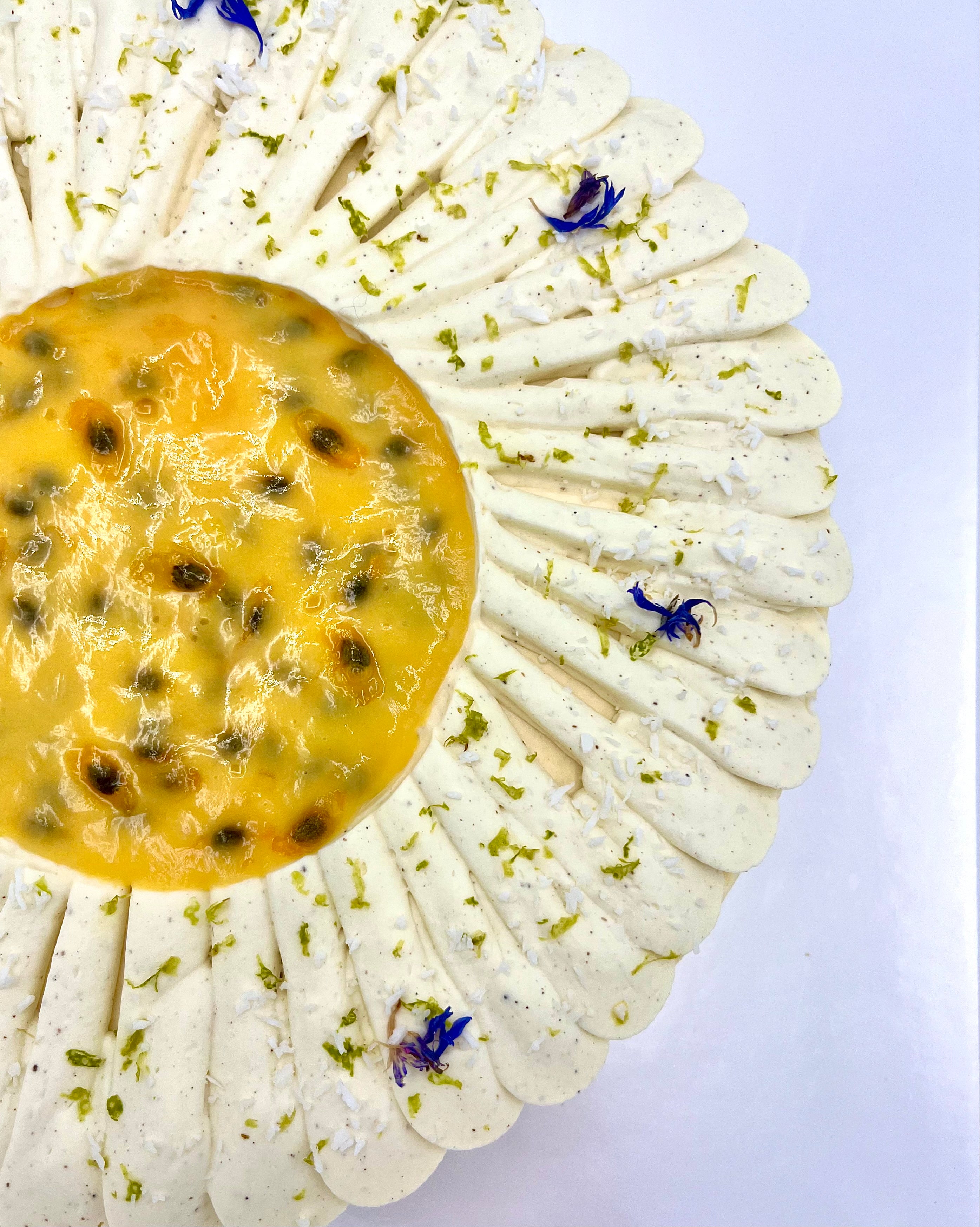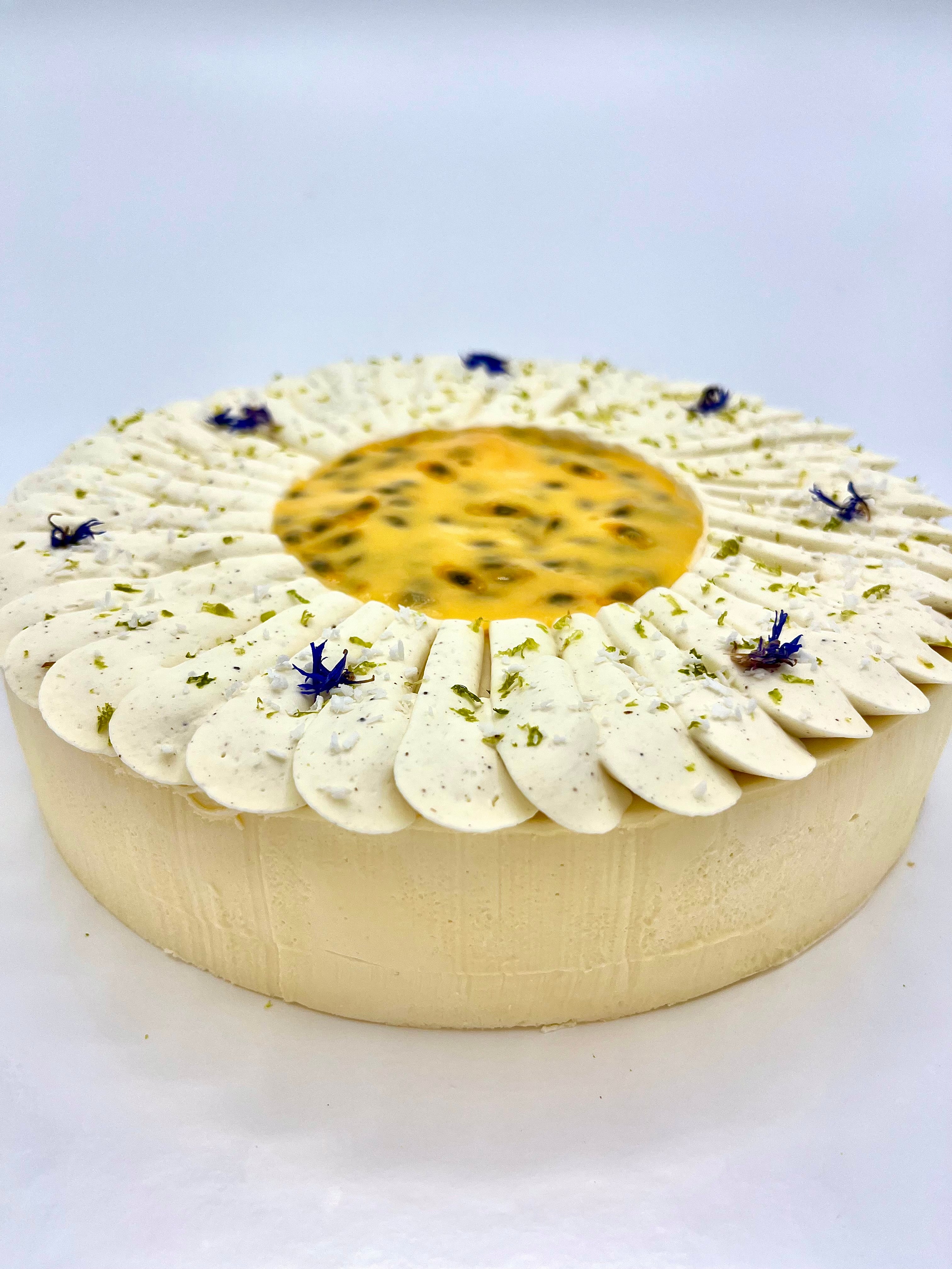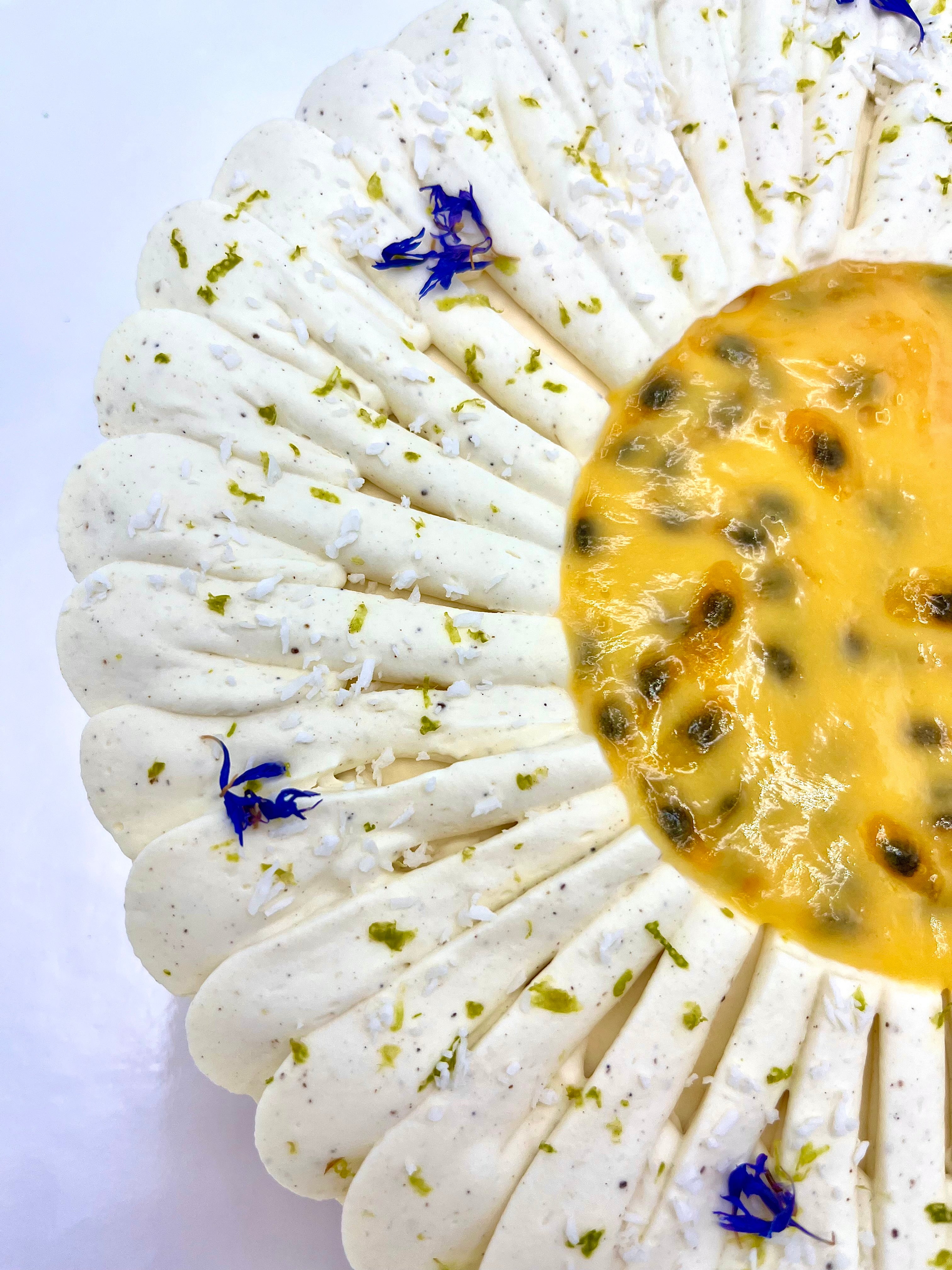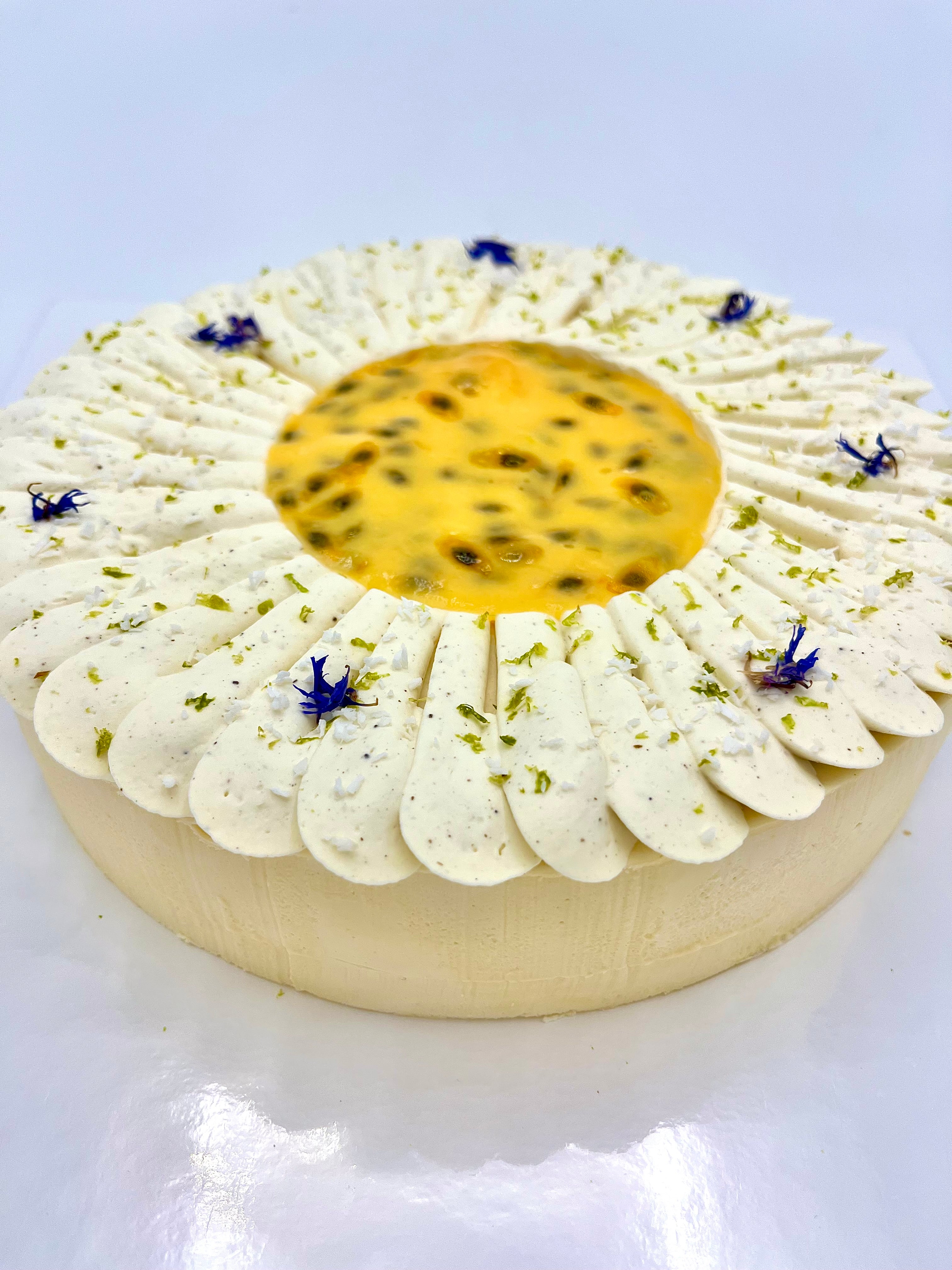Entremets à la fois doux et fruité, l'exotique est composé d’un croustillant au praliné coco, d’un biscuit coco, d’un généreux confit de mangue, d'un crémeux fruit de la passion, d’une mousse coco, d’une ganache montée vanille. Le tout sublimé par des fleurs séchées et de la noix de coco.
